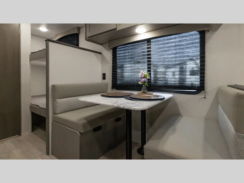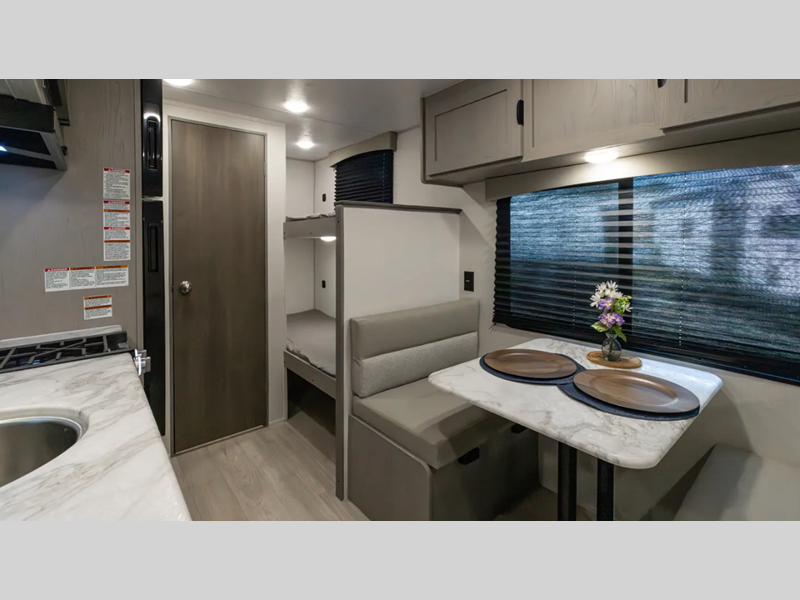 Sleeps 3 Length 17 ft 10 in Ext Width 7 ft Ext Height 10 ft Hitch Weight 330 lbs GVWR 3830 lbs Dry Weight 2559 lbs Cargo Capacity 1271 lbs Fresh Water Capacity 27 gals Grey Water Capacity 27 gals Black Water Capacity 27 gals Furnace BTU 20000 btu Number Of Bunks 2 Refrigerator Type 110V Refrigerator Size 3.2 cu ft Cooktop Burners 2 Shower Size 24" x 36" Number of Awnings 1 Water Heater Type Tankless AC BTU 13500 btu Awning Info 9' Power w/LED Light Strip & Adj. Legs Axle Count 1 Shower Type Standard Similar Floorplans