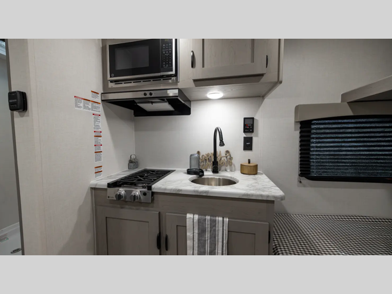 Sleeps 3 Length 18 ft 6 in Ext Width 7 ft Ext Height 10 ft Hitch Weight 375 lbs GVWR 3875 lbs Dry Weight 2943 lbs Cargo Capacity 932 lbs Fresh Water Capacity 27 gals Grey Water Capacity 25 gals Black Water Capacity 25 gals Furnace BTU 20000 btu Available Beds RV Queen Refrigerator Type GE 12V Refrigerator Size 10 cu ft Cooktop Burners 2 Shower Size 24" x 36" Number of Awnings 1 Water Heater Type Tankless On Demand AC BTU 13500 btu Awning Info 10' Power w/LED Light Strip & Adj. Legs Axle Count 1 Shower Type Standard -
