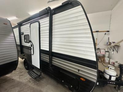 With any Hideout Mini travel trailer by Keystone, you will enjoy lightweight towing thanks to their single axle! The XL tinted safety glass windows are ultra durable, and the power awning will provide protection from the sun as you relax in your camp chairs outside. Each model includes blackout night shades, LED lighting, plus many more interior comforts. There is also a 20K BTU furnace to keep you comfortable, plus a tankless water heater for endless hot showers!
